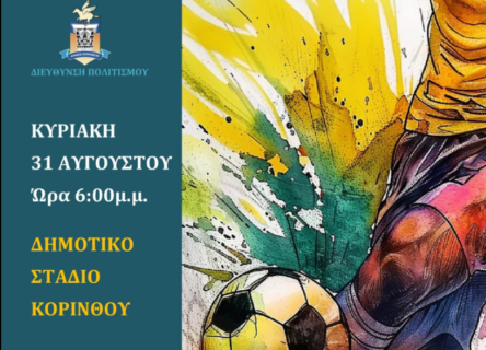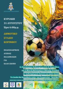Ένας ξεχωριστός ποδοσφαιρικός αγώνας θα πραγματοποιηθεί την Κυριακή 31 Αυγούστου 2025, στις 18:00, στο Δημοτικό Στάδιο Κορίνθου, με στόχο τη στήριξη του σωματείου «ΦΑΣΜΑ» – Σωματείο Γονέων & Φίλων Παιδιών και Ατόμων με Αυτισμό Κορινθίας.