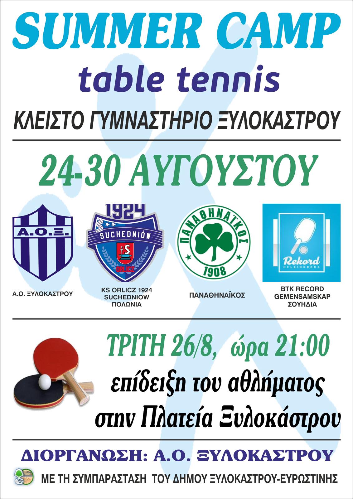 Ξυλόκαστρο: Summer Camp – Επιτραπέζια αντισφαίριση στο Κλειστό Γυμναστήριο