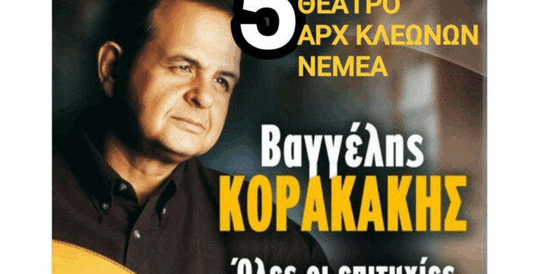 Μία ξεχωριστή μουσική βραδιά υπόσχεται να χαρίσει στο κοινό ο συνθέτης, στιχουργός και ερμηνευτής Βαγγέλης Κορακάκης, την Παρασκευή 5 Σεπτεμβρίου, στο μαγευτικό Θέατρο Αρχαίων Κλεωνών.