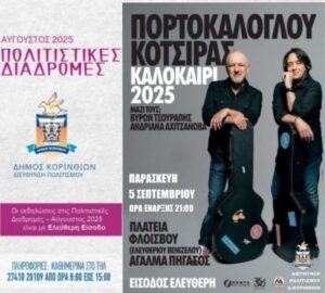 - Στις 5 Σεπτεμβρίου η μεγάλη τελευταία συναυλία του καλοκαιριού με τον Νίκο Πορτοκάλογλου και τον Γιάννη Κότσιρα