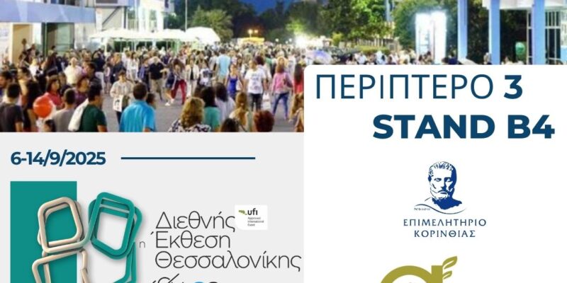 Το Επιμελητήριο Κορινθίας συμμετέχει δυναμικά στην 89η Διεθνή Έκθεση Θεσσαλονίκης (ΔΕΘ), που ξεκινά το Σάββατο στις 6 έως και τις 14 Σεπτεμβρίου 2025 στο Διεθνές Εκθεσιακό Κέντρο Θεσσαλονίκης! Η φετινή έκθεση θα αποτελέσει μια ξεχωριστή γιορτή για όλους, καθώς συμπίπτει με τη συμπλήρωση 100 χρόνων από την ίδρυση του ομώνυμου φορέα, το 1925.