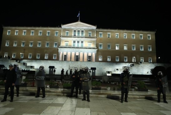 Αστυνομικές δυνάμεις συγκεντρώθηκαν το απόγευμα της Πέμπτης μπροστά από το Μνημείο του Άγνωστου Στρατιώτη μία ημέρα μετά την ψήφιση της τροπολογίας.