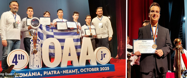 Ο Μάριος Κοκιούσης, μαθητής της Α’ Λυκείου στο σχολείο Homo Educandus – Αγωγή στην Κόρινθο, κατέκτησε Χάλκινο Μετάλλιο στην Ολυμπιάδα Αστρονομίας και Αστροφυσικής Νέων (IOAA Jr 2025), που πραγματοποιήθηκε στη Ρουμανία από τις 18 έως τις 25 Οκτωβρίου 2025.