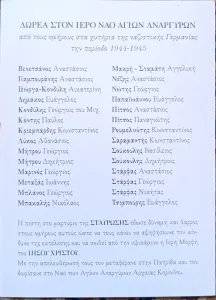 80 χρόνια μετά, ο Δήμος Κορινθίων, με σεβασμό στην ιστορική μνήμη και ικανοποιώντας το αίτημα της τοπικής κοινωνίας δημιουργεί στην Αρχαία Κόρινθο ένα αναθηματικό μνημείο, με τα ονόματα των 29 συμπολιτών μας, δηλαδή των:
