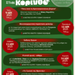 Έφτασε η στιγμή, με μεγάλη χαρά να παρουσιάσουμε το πλούσιο πρόγραμμα εκδηλώσεων που ετοίμασε η Διεύθυνση Πολιτισμού του Δήμου Κορινθίων: