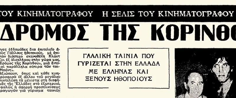 Η ταινία «La Route de Corinthe» (Ο Δρόμος της Κορίνθου, 1967) του σημαντικού σκηνοθέτη της Nouvelle Vague Κλοντ Σαμπρόλ γυρίστηκε σχεδόν εξ ολοκλήρου στην Ελλάδα, την περίοδο Μαΐου–Ιουλίου 1967, στους πρώτους μήνες της δικτατορίας. Εκείνη την εποχή η χώρα αποτελούσε ελκυστικό προορισμό για ξένες παραγωγές, χάρη στο φυσικό της τοπίο, το ευνοϊκό κλίμα και το έμπειρο διαθέσιμο κινηματογραφικό προσωπικό. Εκπληκτικά πλάνα από έναν αγνώριστο Ισθμό στους τίτλους αρχής της ταινίας