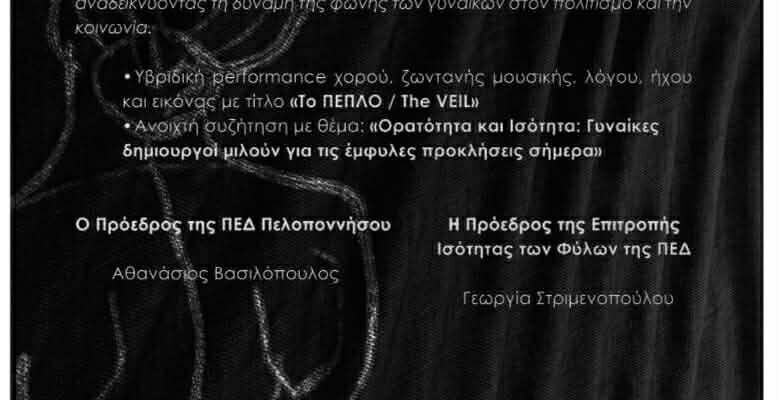Στο πρώτο μέρος θα παρουσιαστεί η υβριδική performance «Το ΠΕΠΛΟ / The VEIL», μια σκηνική πρόταση που συνδυάζει χορό, ζωντανή μουσική, λόγο, ήχο και εικόνα. Το έργο επιχειρεί να προσεγγίσει την έννοια της γυναικείας φωνής μέσα από τη μνήμη, την αντίσταση και τη μεταμόρφωση, αναζητώντας όσα κρύβονται και όσα αποκαλύπτονται πίσω από την ιστορία κάθε γυναίκας.