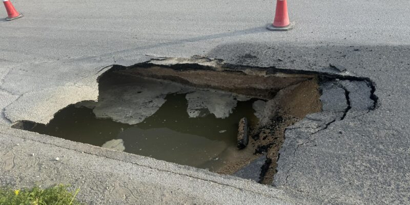 Το συμβάν έγινε αντιληπτό όταν σε σημείο του δρόμου η άσφαλτος κατέρρευσε, αποκαλύπτοντας το μεγάλο κενό που είχε δημιουργηθεί κάτω από το οδόστρωμα. Στην περιοχή υπήρχαν ήδη ενδείξεις υποχώρησης του εδάφους τις προηγούμενες ημέρες, ωστόσο η κατάσταση επιδεινώθηκε απότομα.