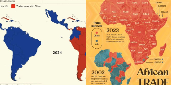 Από την Αφρική στη Λατινική Αμερική, δύο χάρτες δείχνουν μια βαθιά ιστορική μετατόπιση στην παγκόσμια οικονομία.