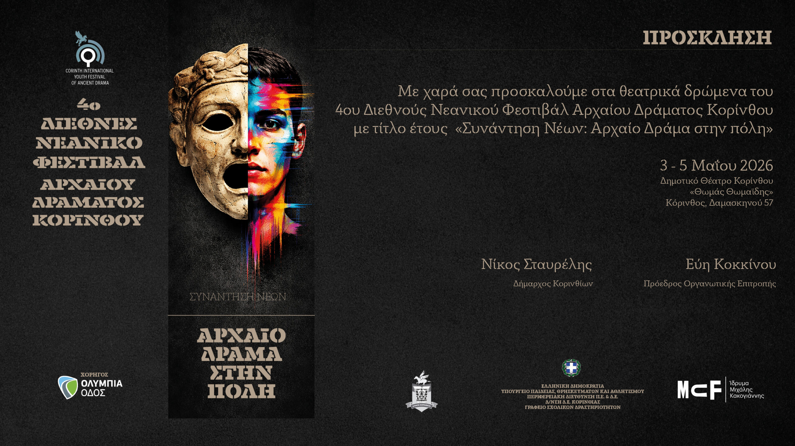 ΔΗΜΟΣ ΚΟΡΙΝΘΙΩΝ Έρχεται το 4ο Διεθνές Νεανικό Φεστιβάλ Αρχαίου Δράματος Κορίνθου By KORINTHIA.NET.GR.23 hours ago