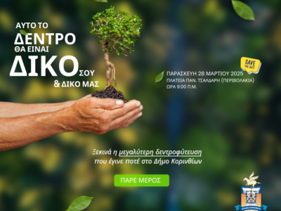 Ξεκινάει στις 28 Μαρτίου η μεγαλύτερη δενδροφύτευση στην ιστορία της Κορίνθου