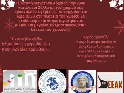 Την Τρίτη η Κόρινθος ανάβει το Χριστουγεννιάτικο Δέντρο της!