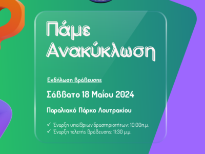 Ο Δήμος Λουτρακίου – Περαχώρας – Αγ. Θεοδώρων στο πλαίσιο του προγράμματος περιβαλλοντικής ευαισθητοποίησης και επιβράβευσης μαθητών, γονέων και εκπαιδευτικών για την ανακύκλωση, ...