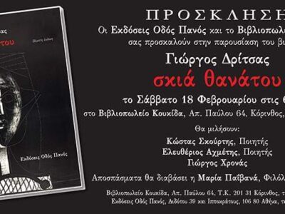 Το Σάββατο η παρουσίαση του βιβλίου του Γιώργου Δρίτσα στην Κόρινθο