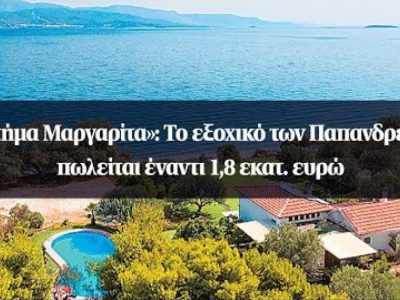 «Κτήμα Μαργαρίτα»: Το εξοχικό των Παπανδρέου πωλείται έναντι 1,8 εκατ. ευρώ
