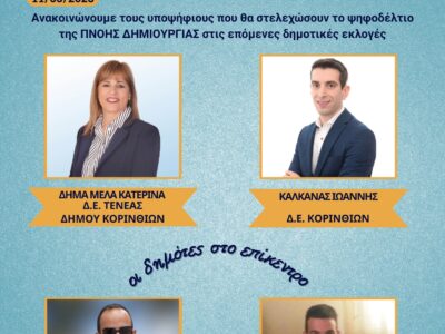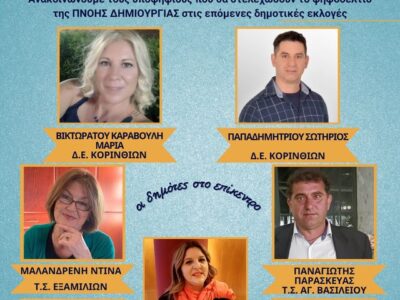Νέος συνδυασμός για τον δήμο Κορινθίων προσφέρει …Πολιτική ΔΙΕΞΟΔΟ – οι δέκα πρώτοι υποψήφιοι (VIDEO)