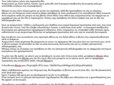 Τις τελευταίες ημέρες καταγράφονται πολλά περιστατικά της διεθνώς γνωστής απάτης μέσω σεξουαλικής εκβίασης “sextortion scam”, που εκδηλώνεται με μαζική αποστολή μηνυμάτων ηλεκτρονικού ταχυδρομείου ...