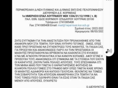 Ένα περιστατικό που συνέβη στο 2ο ΕΠΑΛ Κορίνθου ανέδειξε τα σοβαρά προβλήματα στις υποδομές των σχολείων, αλλά και τις ανεπάρκειες του ΕΣΥ και ...