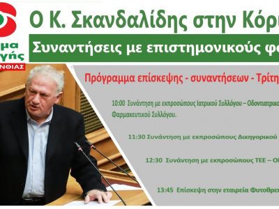 Στην Κόρινθο αύριο ο Κώστας Σκανδαλίδης