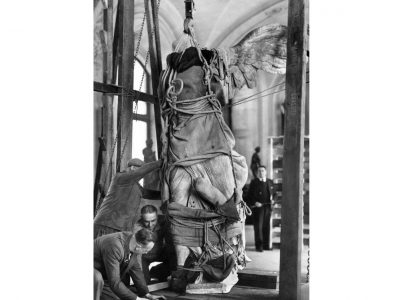 Η Νίκη της Σαμοθράκης, που συσκευάζεται κατα την αφαίρεση της, για να προστατευθεί κατά τη διάρκεια του πολέμου.Λούβρο, Παρίσι, 1939.