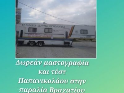 Δωρεάν Μαστογραφία και Τεστ Παπανικολάου – Η κινητή μονάδα θα βρίσκεται στην παραλία Βραχατίου