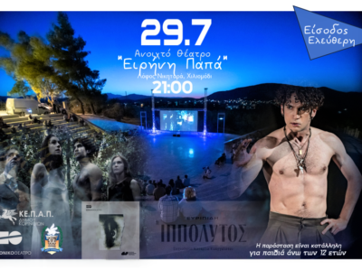 “Ιππόλυτος” από το Εθνικό Θέατρο και με δωρεάν είσοδο το Σάββατο στο Χιλιομόδι