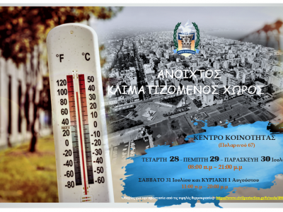 Ανοιχτό για τους πολίτες θα είναι το Κέντρο Κοινότητας του δήμου Κορινθίων τις ημέρες που, σύμφωνα με την Ε.Μ.Υ, θα σημειωθούν υψηλές θερμοκρασίες ...