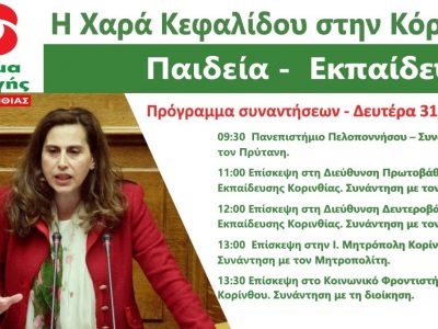 Τη Δευτέρα 31 Μαΐου, κλιμάκιο του Κινήματος Αλλαγής με επικεφαλής τη Βουλευτή Δράμας και Τομεάρχη Παιδείας και Θρησκευμάτων Χαρά Κεφαλίδουεπισκέφτηκε την Κόρινθο και ...