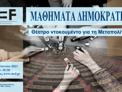 Την Τρίτη, 27 Ιουνίου 2023, ώρα 20:30 το «Βλέμμα εφήβων» θα παρουσιάσει τη φετινή του δουλειά πάνω στη Μεταπολίτευση «Μαθήματα δημοκρατίας». Μπορείτε να προμηθευτείτε ...