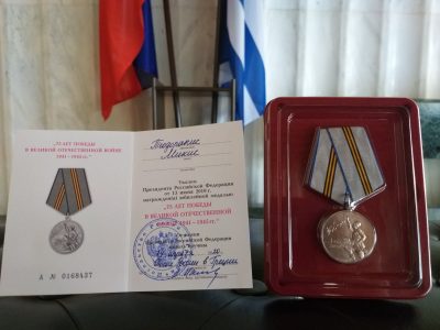 Το ρωσικό μετάλλιο «75 χρόνια από τη Νίκη στον Μεγάλο Πατριωτικό Πόλεμο» δόθηκε στον Μίκη Θεοδωράκη από την πρεσβεία της Ρωσίας στην Αθήνα. ...