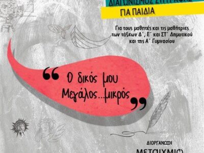 «Ο δικός μου Μεγάλος… μικρός» – Διαγωνισμός συγγραφής για μαθητές και μαθήτριες