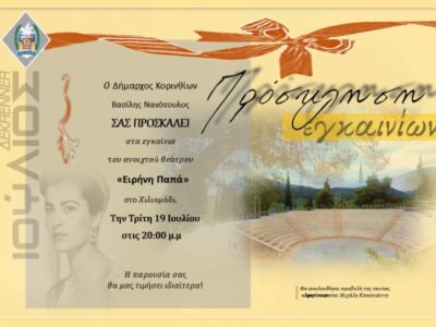 Στις 19 Ιουλίου με την κινηματογραφική ταινία “Ιφιγένεια”, του Μιχάλη Κακογιάννη, που ήταν υποψήφια για ΟΣΚΑΡ και με πρωταγωνίστρια την σπουδαία Κορίνθια ηθοποιό θα γίνουν ...