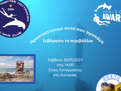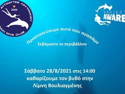 Το Σάββατο 28 Αυγούστου στις 2:00 το μεσημέρι τα μέλη του Ομιλου Αυτοδυτών Λουτρακίου / Loutraki Dive Club, θα πραγματοποιήσουν καθαρισμό του βυθού στη ...