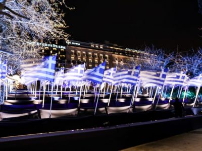 O σημαιοστολισμός για την 25η Μαρτίου στην πλ. Συντάγματος – Εντυπωσιακές εικόνες