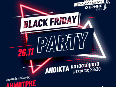 Ο Εμπορικός σύλλογος Κορίνθου, καλεί τα μέλη του να στηρίξουν τον θεσμό της “BLACK FRIDAY” και να συμμετέχουν στο τριήμερο προσφορών που θα ...