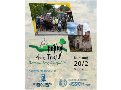 Η FREELAND ADVENTURE CAMP, ο Δασικός Συνεταιρισμός Χιλιομοδίου Κορινθίας και ο Σύλλογος Πυροπροστασίας Χιλιομοδίου «Soste to»προκηρύσσουν τον 4o Trail Φανερωμένης Χιλιομοδίου με δύο αγώνες 1η ...